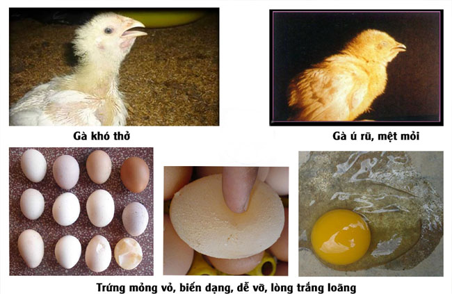- Giảm sản lượng: Giảm đột ngột và đáng kể số lượng gà đẻ (10% – 50%), hoặc thậm chí ngừng đẻ.